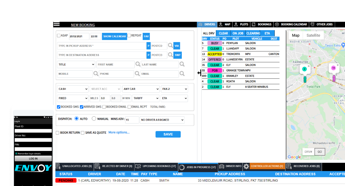 Envoy, taxi booking, dispatch and management system is a revolutionary easy way of booking jobs, dispatching taxis and managing customers and drivers. It is the most affordable taxi system in the market, a perfect system to choose for starting taxi businesses or replacing old systems. Envoy taxi dispatch systems is a cloud based application packed with features to run your taxi cab, minicab, chauffeur, airport transfer, courier and similar types of business. There is no need of any special hardware or software nor any installation required to start using our dispatch system. Envoy system can be set up for you within 30 minutes.
